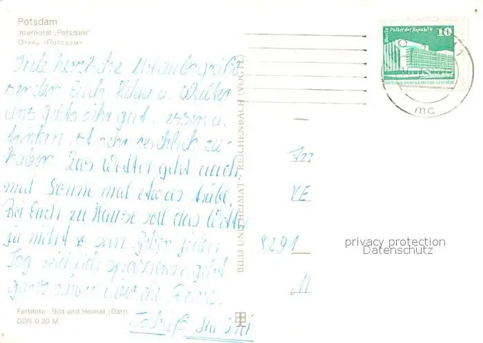 Potsdam Interhotel Potsdam Potsdam postalisch nicht gelaufen nach 1965 Erhaltung siehe scans [WerneD78] WernPID7