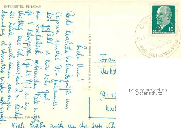 Potsdam Interhotel Potsdam Potsdam postalisch nicht gelaufen nach 1965 Erhaltung siehe scans [WerneD78] WernPID7