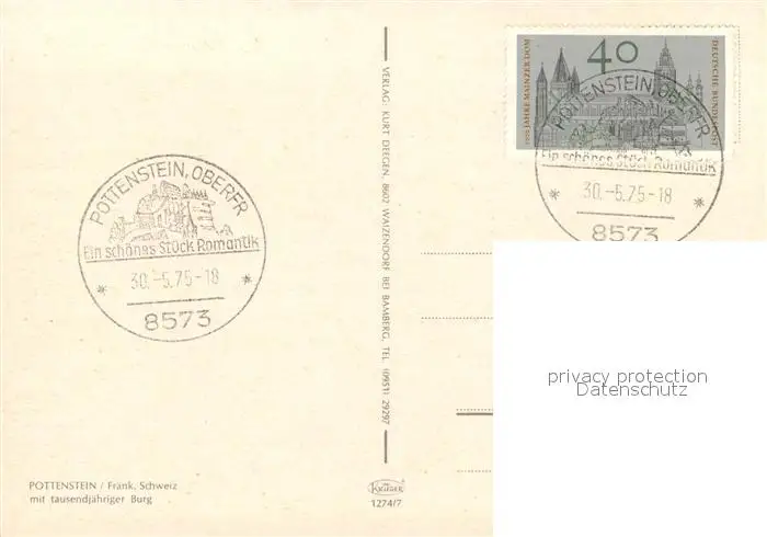 Pottenstein_Oberfranken Ansicht mit 1000jaehriger Burg Naturpark Fraenkische Schweiz Pottenstein_Oberfranken postalisch gelaufen 1975 Erhaltung siehe scans [FriedD77] Frierer