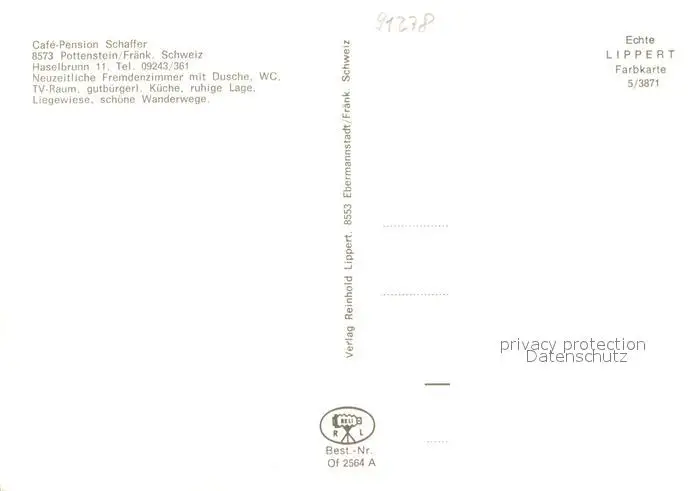 Pottenstein_Oberfranken Cafe Pension Schaffer Gaststube Pottenstein_Oberfranken postalisch nicht gelaufen nach 1965 Erhaltung siehe scans [WerneD78] WernPID7