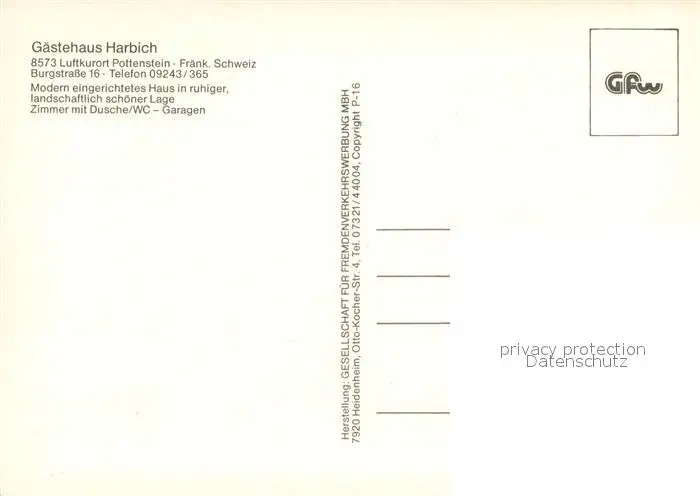 Pottenstein_Oberfranken Gaestehaus Harbich Gastraum Terrasse Luftkurort Fraenkische Schweiz Pottenstein_Oberfranken postalisch nicht gelaufen nach 1965 Erhaltung siehe scans [FriedD77] Frierer
