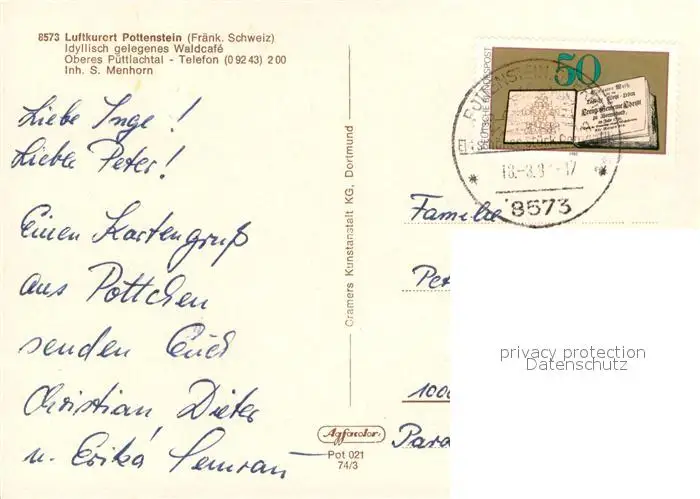Pottenstein_Oberfranken Idyllisches Waldcafe Oberes Puettlachtal Pottenstein_Oberfranken postalisch gelaufen 1980 Erhaltung siehe scans [WerneD78] WernPID7