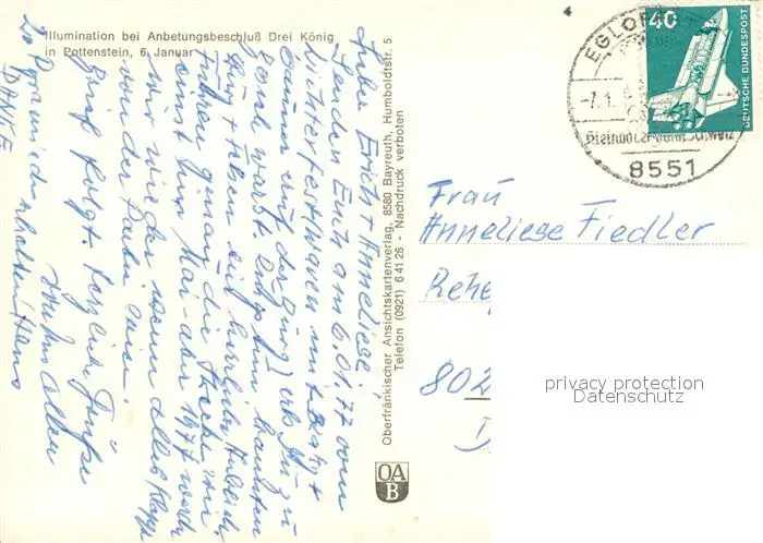 Pottenstein_Oberfranken Illumination bei Anbetungsbeschluss Drei Koenig Pottenstein_Oberfranken postalisch gelaufen 1977 Erhaltung siehe scans [WerneD78] WernPID7