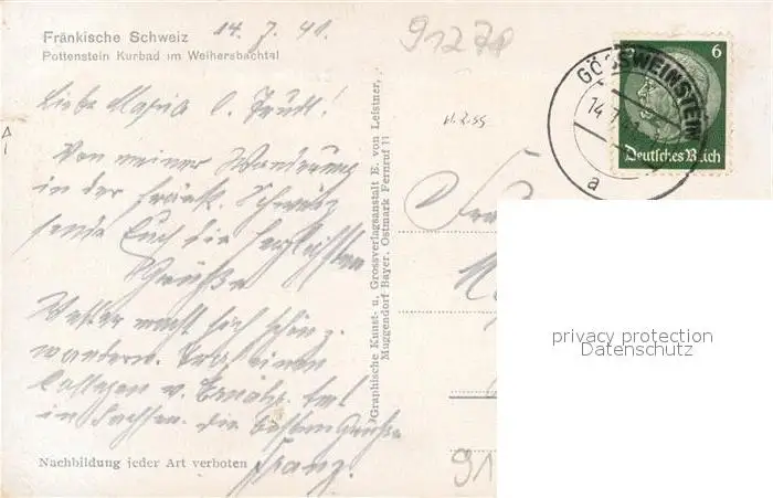 Pottenstein_Oberfranken Kurbad im Weihersbachtal Pottenstein_Oberfranken postalisch gelaufen 1941 Erhaltung siehe scans [WerneD78] WernPID7