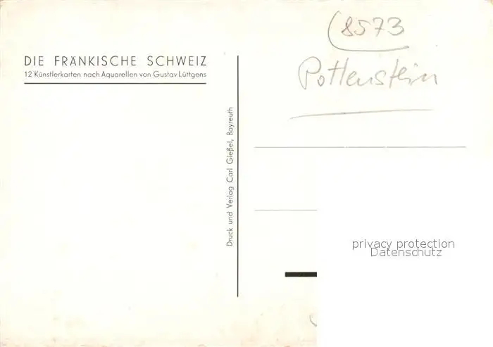 Pottenstein_Oberfranken Ortsmotiv mit Burg Kuenstlerkarte Pottenstein_Oberfranken postalisch nicht gelaufen 1921-1965 Erhaltung siehe scans [WerneD78] WernPID7
