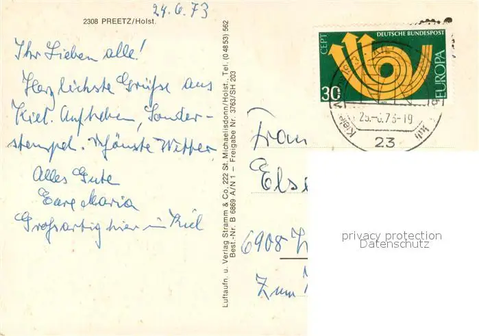 Preetz_Holstein Fliegeraufnahme Teilansicht Preetz_Holstein postalisch gelaufen 1973 Erhaltung siehe scans [LiesaD40] LiesID40