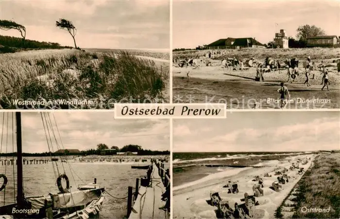 Prerow_Ostseebad Westrand mit Windflaeche Blick zum Duenenhaus Bootssteg Oststrand Prerow_Ostseebad postalisch gelaufen 1921-1965 Erhaltung siehe scans [WerneD78] WernPID7