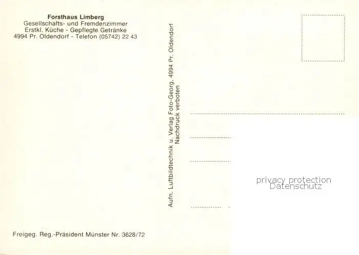 Preussisch-Oldendorf Forsthaus Limberg Fliegeraufnahme postalisch nicht gelaufen nach 1965 Erhaltung siehe scans [FriedD77] Frierer
