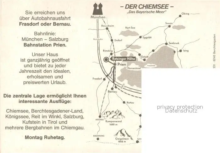 Prien_Chiemsee Gasthof Der Weingarten Ratzingerhoehe Landschaftspanorama mit Hochgern Chiemgauer Alpen Prien Chiemsee postalisch nicht gelaufen nach 1965 Werbekarte (keine Postkarte) Erhaltung siehe scans [FriedD77] Werbekarte (keine Postkarte) Frierer
