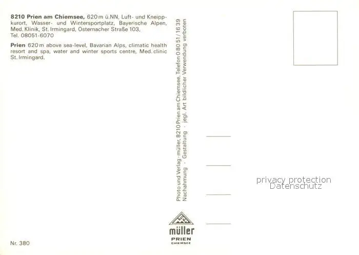 Prien_Chiemsee Klinik St Irmingard Kampenwand Bayerische Alpen Prien Chiemsee postalisch nicht gelaufen nach 1965 Erhaltung siehe scans [FriedD77] Frierer