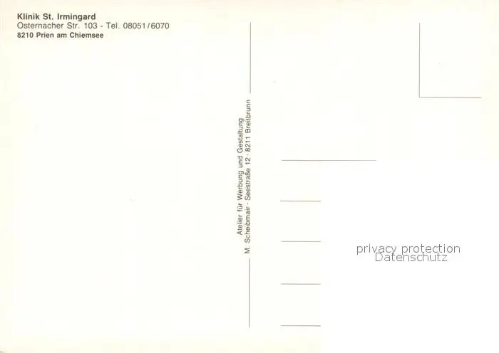 Prien_Chiemsee Klinik St. Irmingrad Alpenblick Prien Chiemsee postalisch nicht gelaufen nach 1965 Erhaltung siehe scans [FriedD77] Frierer