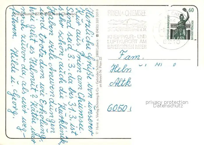 Prien_Chiemsee Schaere Freibad Heimatmuseum Chiemseebahn Kurgarten Schloss Herrenchiemsee Prien Chiemsee postalisch gelaufen nach 1965 Erhaltung siehe scans [LiesaD40] LiesID40