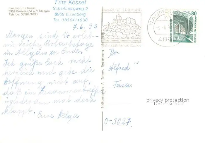 Proebsten Gaestehaus Koessel Gaststube Proebsten postalisch gelaufen 1993 Erhaltung siehe scans [WerneD78] WernPID7