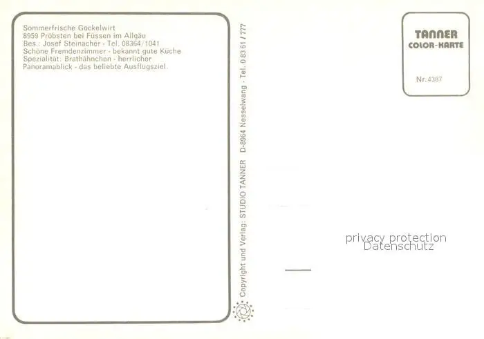 Proebsten Gasthof Pension Gockelwirt Proebsten postalisch nicht gelaufen nach 1965 Erhaltung siehe scans [FriedD77] Frierer