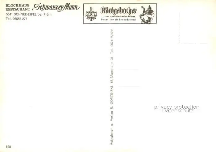 Pruem_Eifel Blockhaus Restaurant Schwarzer Mann Schnee Eifel Pruem_Eifel postalisch nicht gelaufen nach 1965 Erhaltung siehe scans [FriedD77] Frierer
