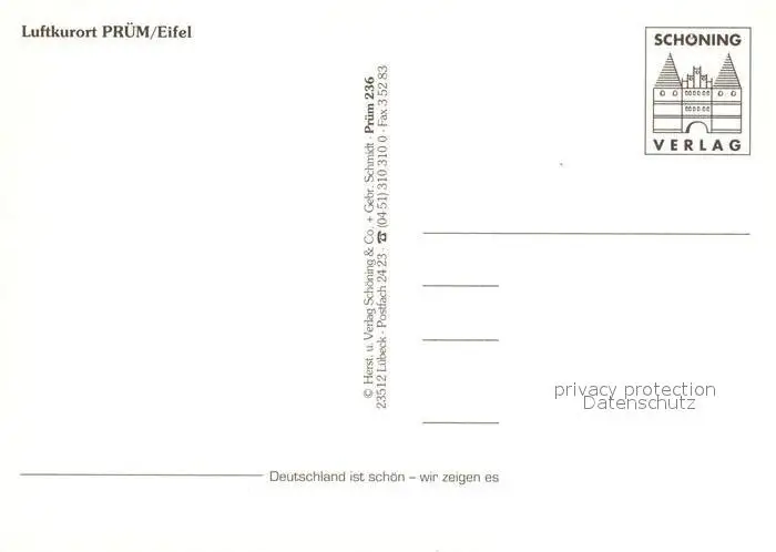 Pruem_Eifel Kirche Rathaus Brunnen Schloss Pruem_Eifel postalisch nicht gelaufen nach 1965 Erhaltung siehe scans [WerneD78] WernPID7
