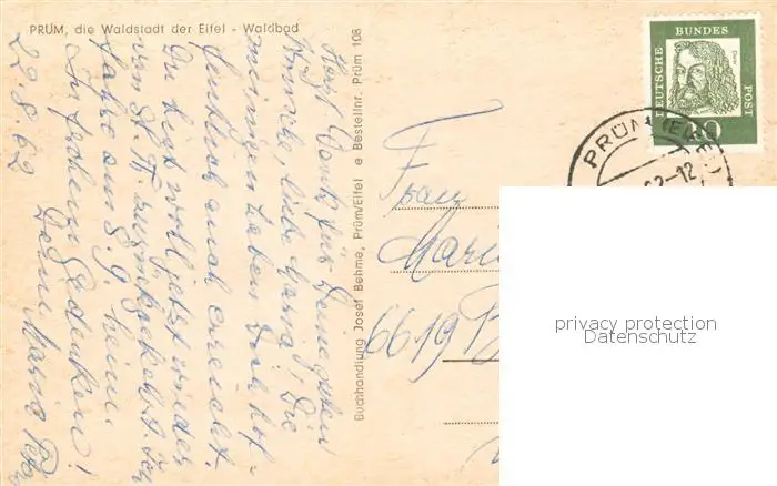 Pruem_Eifel Waldbad Freibad Pruem_Eifel postalisch gelaufen 1962 Erhaltung siehe scans [FriedD77] Frierer