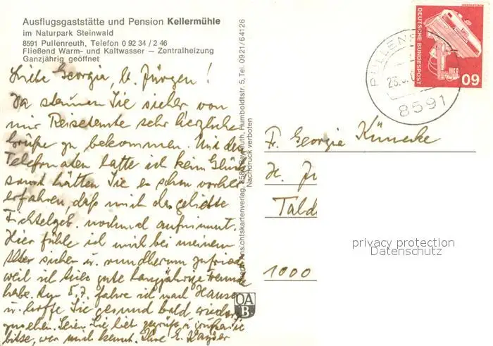 Pullenreuth Restaurant Pension Kellermuehle Pullenreuth postalisch gelaufen nach 1965 Erhaltung siehe scans [LiesaD40] LiesID40