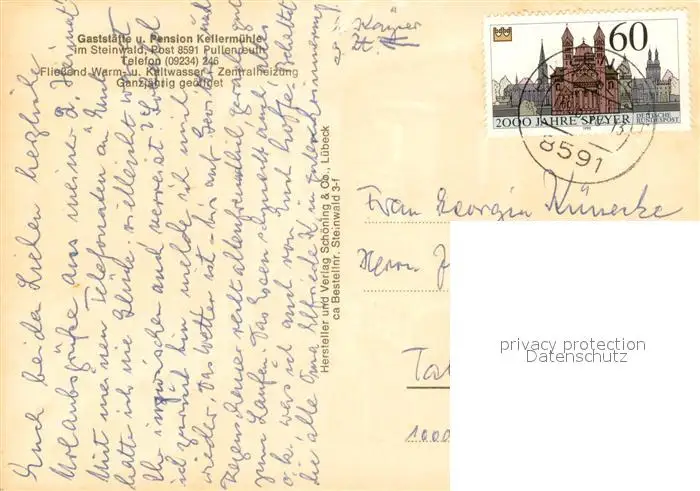 Pullenreuth Restaurant Pension Kellermuehle Pullenreuth postalisch gelaufen nach 1965 Erhaltung siehe scans [LiesaD40] LiesID40