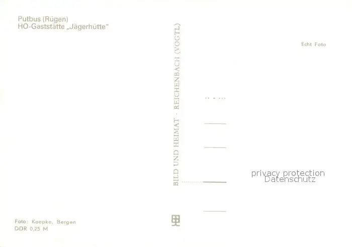 Putbus_Ruegen HO Gaststaette Jaegerhuette Putbus Ruegen postalisch nicht gelaufen nach 1965 Erhaltung siehe scans [KathaD81] Kathoren