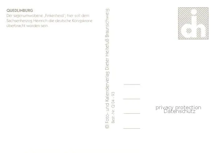 Quedlinburg Der Finkenherd Quedlinburg postalisch nicht gelaufen nach 1965 Erhaltung siehe scans [WerneD78] WernPID7