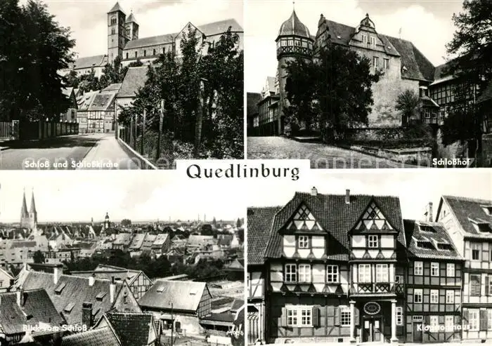 AK / Ansichtskarte Quedlinburg Schloss und Schlosskirche Schlosshof Panorama Klopstockhaus Quedlinburg