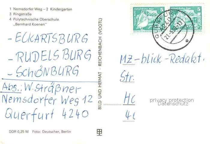 Querfurt Nemsdorfer Weg Kindergarten Ringstrasse Polytechn Oberschule Bernhard Koenen Querfurt postalisch gelaufen 1990 Erhaltung siehe scans [WerneD78] WernPID7