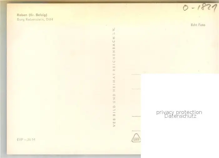 Raben_Brandenburg Burg Rabenstein DJH Jugendherberge Landschaftspanorama Raben Brandenburg postalisch nicht gelaufen 1968 Erhaltung siehe scans [FriedD77] Frierer