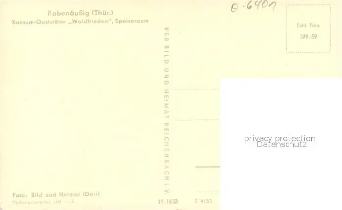 Rabenaeussig Konsum Gaststaette Waldfrieden Speiseraum Rabenaeussig postalisch nicht gelaufen 1921-1965 Erhaltung siehe scans [WerneD78] WernPID7