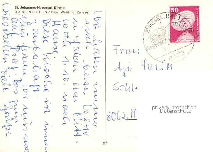 Rabenstein_Zwiesel St Johannes Nepomuk Kirche Rabenstein_Zwiesel postalisch gelaufen 1980 Erhaltung siehe scans [FriedD77] Frierer
