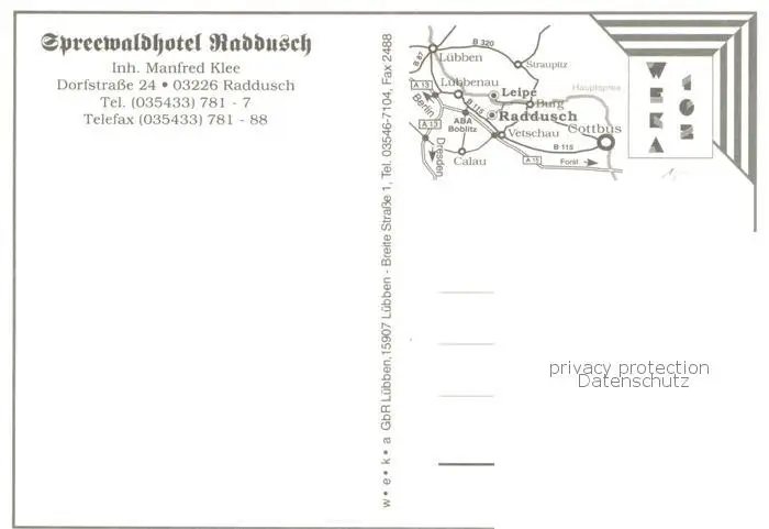 Raddusch Spreewaldhotel Raddusch Gaststube Spreewald Bootspartie Raddusch postalisch nicht gelaufen nach 1965 Erhaltung siehe scans [WerneD78] WernPID7