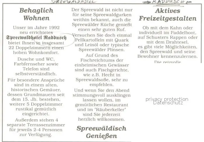 Raddusch Spreewaldhotel Raddusch Zimmer Raddusch postalisch nicht gelaufen nach 1965 Werbekarte (keine Postkarte) Erhaltung siehe scans [WerneD78] Werbekarte (keine Postkarte) WernPID7