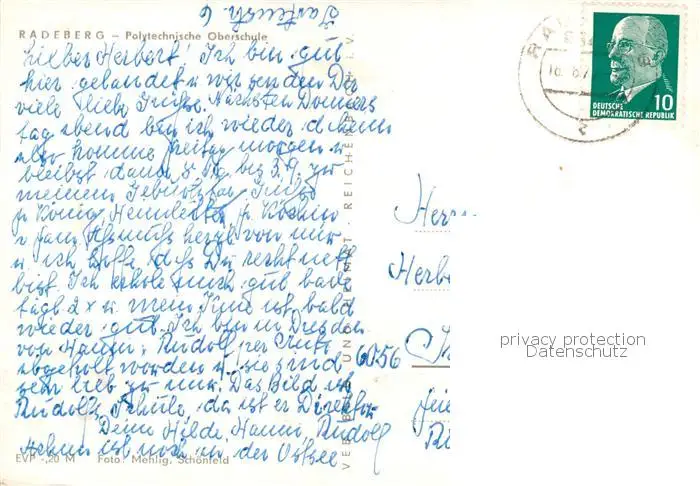Radeberg_Sachsen Polytechnische Oberschule Radeberg Sachsen postalisch gelaufen 1972 Erhaltung siehe scans [FriedD77] Frierer