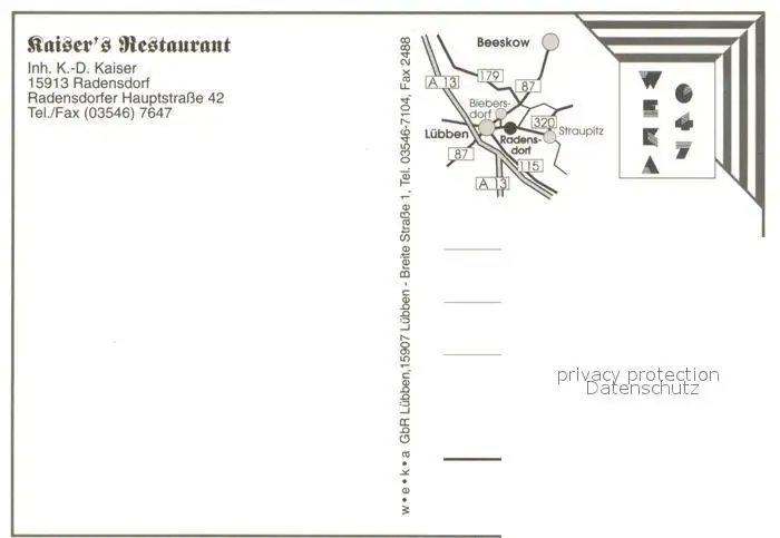 Radensdorf_Spreewald Kaiser's Restaurant Radensdorf Spreewald postalisch nicht gelaufen nach 1965 Erhaltung siehe scans [FriedD77] Frierer