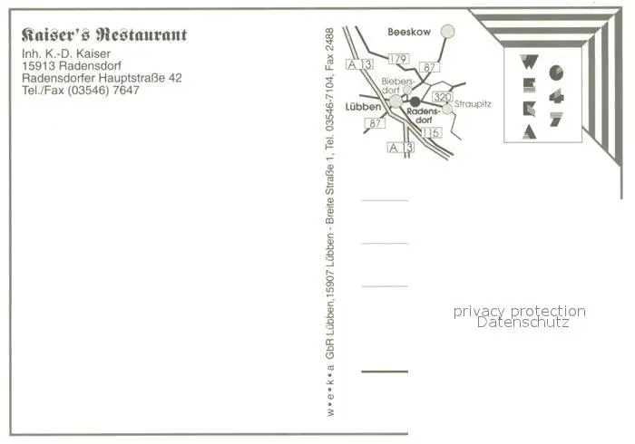 Radensdorf_Spreewald Kaisers Restaurant Radensdorf Spreewald postalisch nicht gelaufen nach 1965 Erhaltung siehe scans [LiesaD40] LiesID40