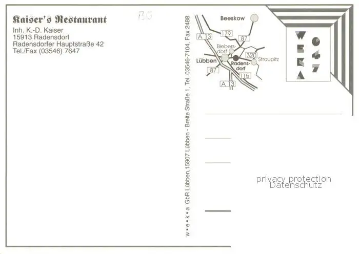 Radensdorf_Spreewald Kaisers Restaurant Radensdorf Spreewald postalisch nicht gelaufen nach 1965 Erhaltung siehe scans [LiesaD40] LiesID40