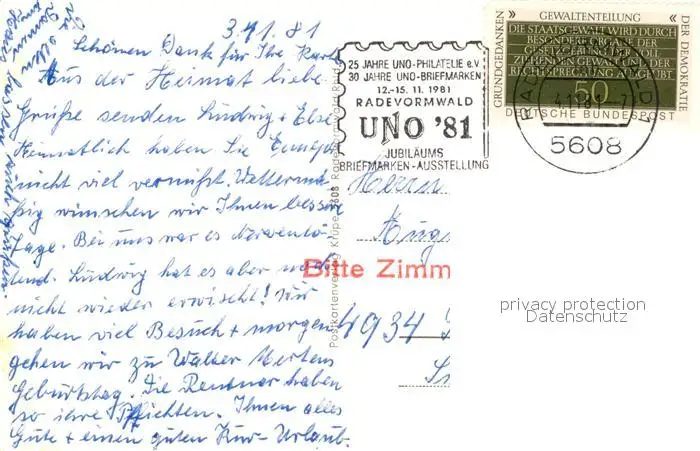 Radevormwald Kategorie Alte Ansichtskarten Postkarten bx57999 Radevormwald Radevormwald postalisch gelaufen 1981 Erhaltung siehe scans [NatalD47]