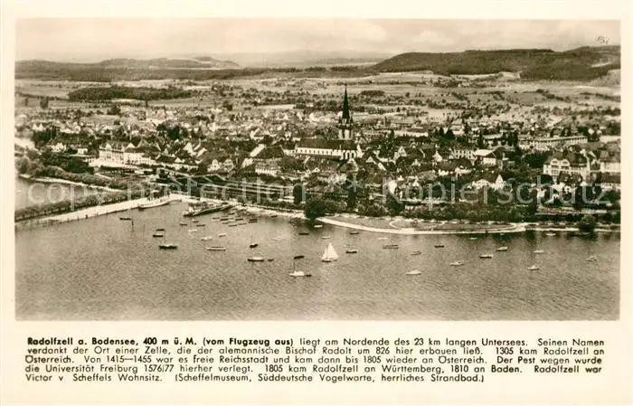 Radolfzell_Bodensee Fliegeraufnahme Franckh Chronik Karte Radolfzell Bodensee postalisch nicht gelaufen 1921-1965 Erhaltung siehe scans [FriedD77] Frierer