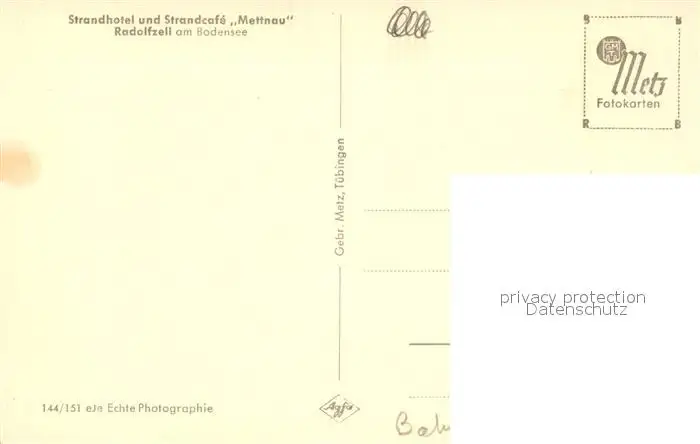 Radolfzell_Bodensee Strandhotel Strandcafe Mettnau Radolfzell Bodensee postalisch nicht gelaufen 1921-1965 Erhaltung siehe scans [FriedD77] Frierer