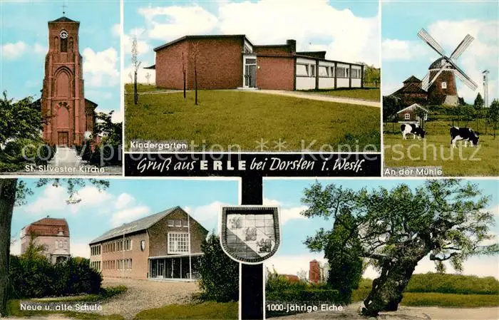 Raesfeld Kindergarten St. Silvester-Kirche Schule 1000-Jaehrige-Eiche Raesfeld postalisch nicht gelaufen 1921-1965 Erhaltung siehe scans [LiesaD40] LiesID40