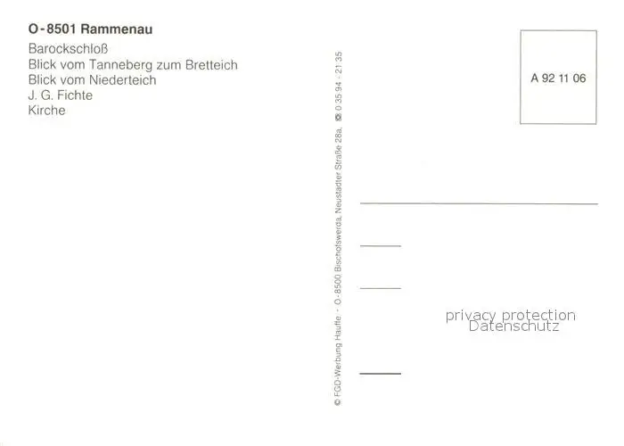 Rammenau Barockschloss Tanneberg zum Bretteich Kirche Rammenau postalisch nicht gelaufen nach 1965 Erhaltung siehe scans [NatalD47] NataID47