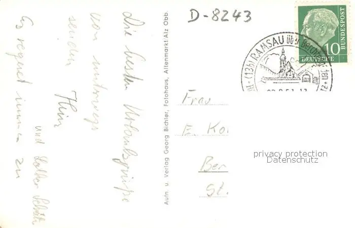 Ramsau_Berchtesgaden Alpengasthaus Wachterl an der Deutschen Alpenstrasse gegen Reiteralpe Ramsau Berchtesgaden postalisch gelaufen 1957 Erhaltung siehe scans [FriedD77] Frierer
