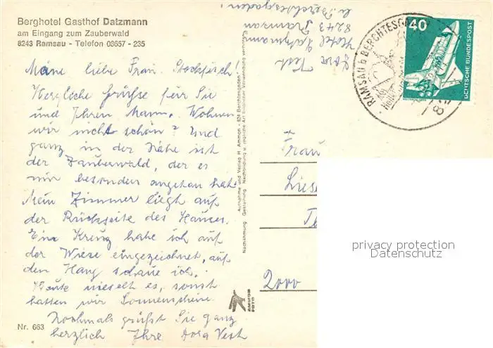 Ramsau_Berchtesgaden Berghotel Gasthof Datzmann Ramsau Berchtesgaden postalisch gelaufen nach 1965 Erhaltung siehe scans [WerneD78] WernPID7
