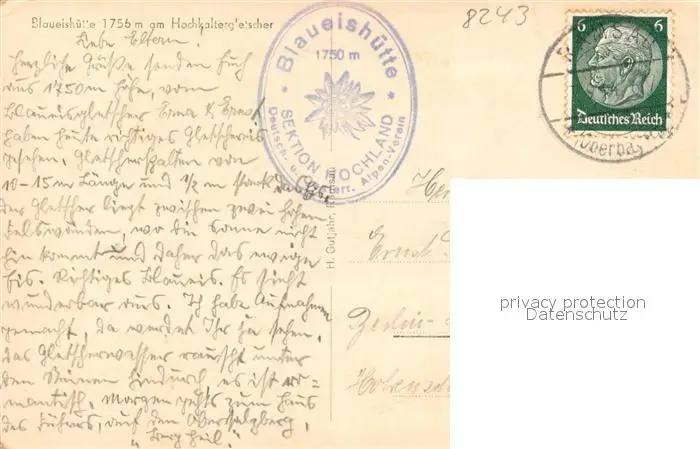 Ramsau_Berchtesgaden Blaueishuette am Hochkaltergletscher Alpen Ramsau Berchtesgaden postalisch gelaufen 1921-1965 Erhaltung siehe scans [FriedD77] Frierer