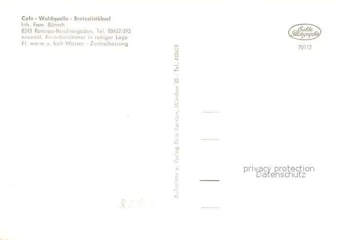 Ramsau_Berchtesgaden Café Waldmuehle Brotzeitstueberl Waldquelle Terrasse Ramsau Berchtesgaden postalisch nicht gelaufen 1921-1965 Erhaltung siehe scans [FriedD77] Frierer