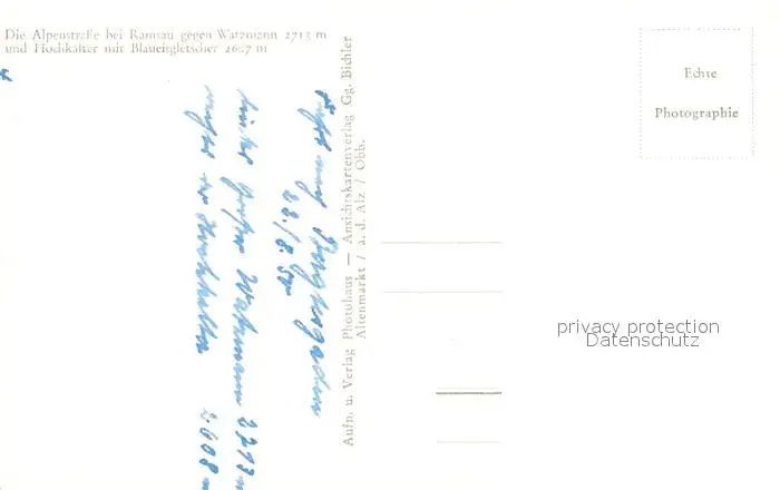 Ramsau_Berchtesgaden Deutsche Alpenstrasse beim Wachterl mit Watzmann und Hochkalter Ramsau Berchtesgaden postalisch nicht gelaufen 1950 Erhaltung siehe scans [WerneD78] WernPID7