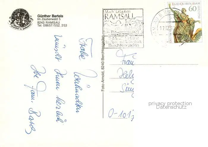 Ramsau_Berchtesgaden Haus Bartels Ramsau Berchtesgaden postalisch gelaufen 1992 Erhaltung siehe scans [FriedD77] Frierer