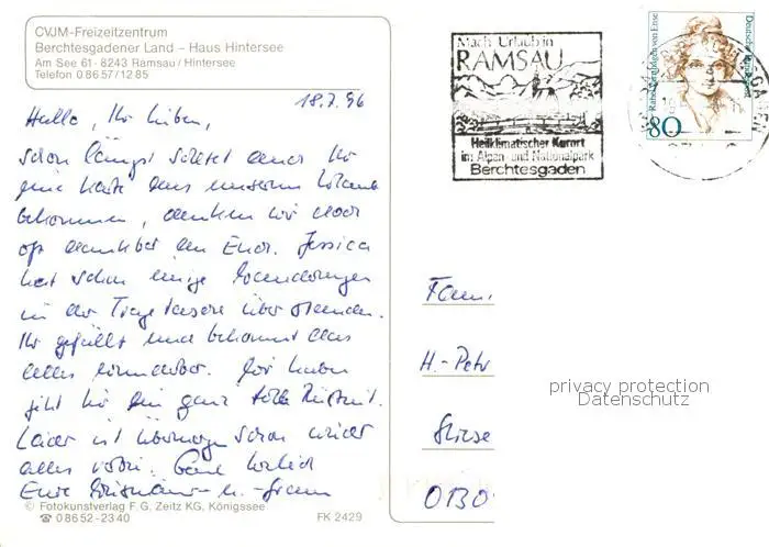 Ramsau__Berchtesgaden CVJM Freizeitzentrum Panorama postalisch gelaufen 1996 Erhaltung siehe scans [WerneD78] WernPID7
