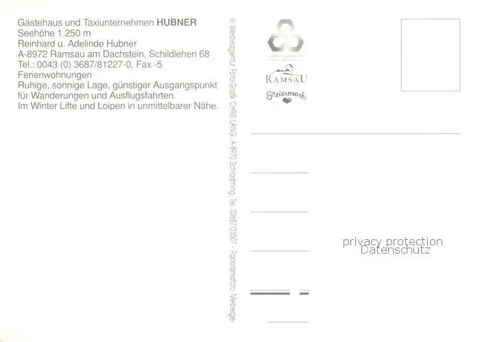 Ramsau__Berchtesgaden Gaestehaus Hubner Zimmer Dachstein Panorama postalisch nicht gelaufen nach 1965 Erhaltung siehe scans [FriedD77] Frierer