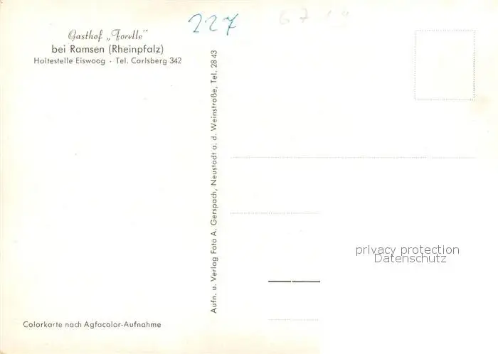 Ramsen_Pfalz Gasthof Forelle Gondelteich Ramsen Pfalz postalisch nicht gelaufen nach 1965 Erhaltung siehe scans [FriedD77] Frierer